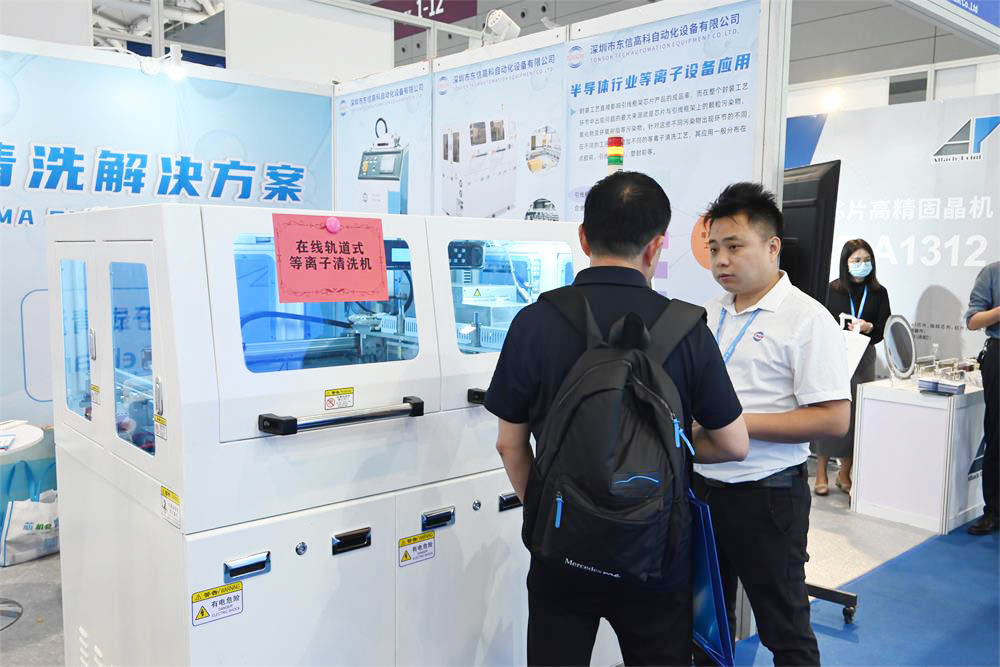 本次展會,針對半導體封裝行業我司主要帶來了我們最新的等離子清洗設備,及等離子去膠機。封裝工藝直接影響引線框架芯片產品的成品率,而在整個封裝工藝環節中出現問題的最大來源就是芯片與引線框架上的顆粒污染物、氧化物及環氧樹脂等污染物。針對這些不同污染物出現環節的不同在不同的工序前可增加不同的等離子清洗工藝,其應用一般分布在點膠前、引線鍵合前、塑封前等。