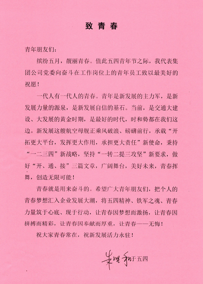 朱堅(jiān)和書(shū)記傳達(dá)了習(xí)近平總書(shū)記在中國(guó)政法大學(xué)的重要講話精神,并宣讀了致青年朋友們的一封信——《致青春》,向奮斗在工作崗位上的廣大青年員工傳達(dá)了殷切期望與美好祝愿。信件原文如下: