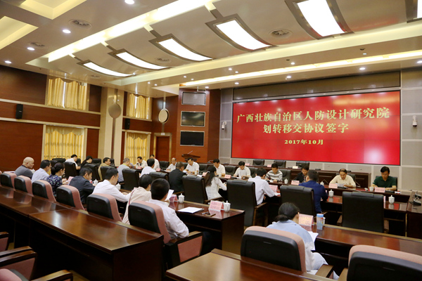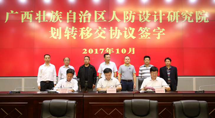 10月30日上午9時,自治區(qū)國資委、自治區(qū)人防辦及廣西新發(fā)展交通集團有限公司在自治區(qū)人防辦應(yīng)急指揮中心舉行廣西壯族自治區(qū)人防設(shè)計研究院劃轉(zhuǎn)移交協(xié)議簽字儀式,標志著自治區(qū)人防設(shè)計院正式與自治區(qū)人防辦脫鉤,成建制劃轉(zhuǎn)移交新發(fā)展集團管理。集團公司黨委書記、董事長朱堅和,黨委副書記、副董事長、總經(jīng)理唐咸秋,黨委副書記、董事、工會主席張友坐及集團公司辦公室、投資改革發(fā)展部、人力資源部、黨群工作部、法律事務(wù)部等部門主要負責人參加簽字儀式。