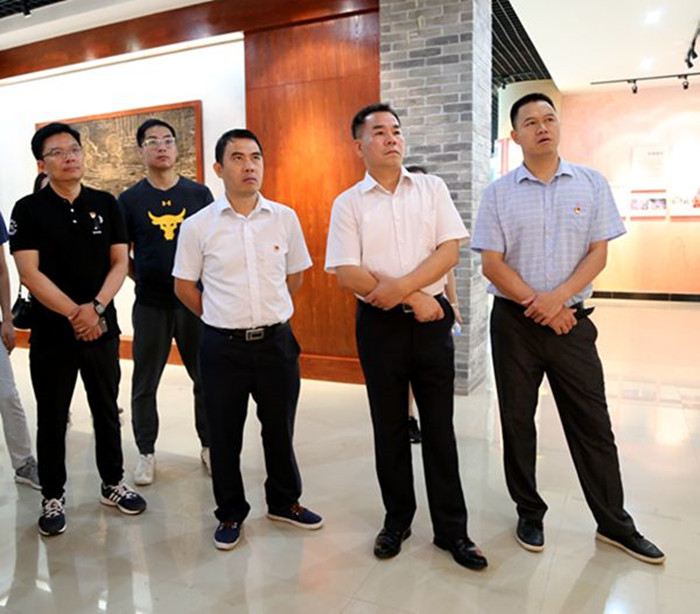 圖一:集團(tuán)公司紀(jì)委書記韋慶和(右二)、新恒通公司黨委書記賴水平(右一)帶隊參觀于成龍廉政文化展示館