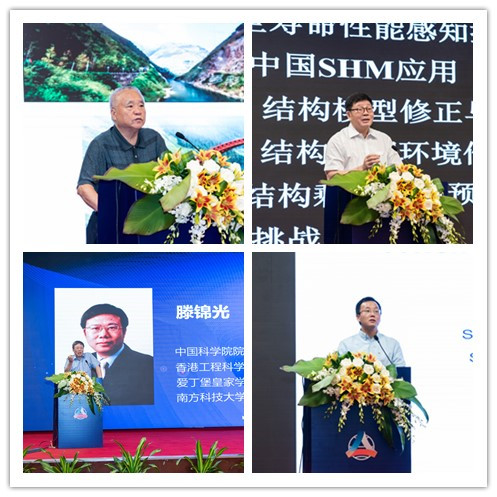 圖為鄭皆連院士(左上)、歐進萍院士(右上)、滕錦光院士(左下)、YangWang(美國)教授(右下)分享最新技術(shù)研究成果