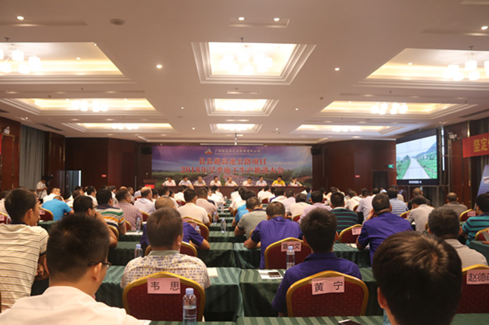 9月20日下午,廣西新發展交通集團縣縣通高速公路項目2018年旱季施工生產推進大會在融河高速順利召開。廣西北部灣投資集團有限公司有關領導出席會議,廣西新恒通高速公路有限公司及各參建單位主要領導,鐘昭、昭蒙、蒙象、都巴、融河等項目施工建設人員代表130余人參加會議。