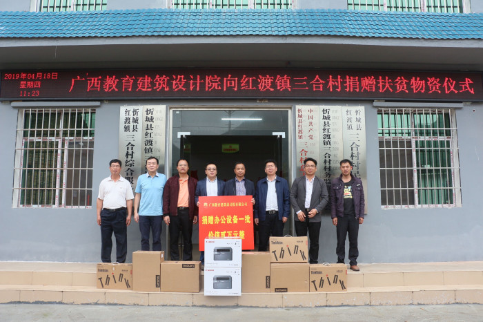 4月18日,廣西教育建筑設計院有限公司黨支部書記、執(zhí)行董事梁志率隊到忻城縣紅渡鎮(zhèn)三合村開展扶貧慰問,并向三合村委捐贈了一批價值2萬元的辦公設備,用于駐村扶貧工作隊員開展扶貧工作。教育設計院副院長鄧江,忻城縣委常委、縣人民政府副縣長王華,縣政協(xié)副主席、紅渡鎮(zhèn)黨委書記羅健康同時參加捐贈儀式。